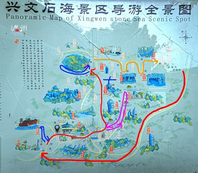 景区导览图清晰,但部分岔路口指示牌不够明确;