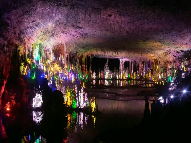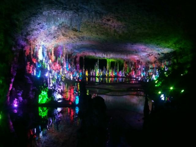 景区内有许多“野导游”,对兴文石海感兴趣的游客可以请一个听听讲解。兴文石海主要是以溶洞出名,游客在洞内会感受到溶洞无比巨大。洞内各种形态各异的钟乳石让人叹为观止,再配上五颜六色的灯光,在此拍照留念是不错的选择。