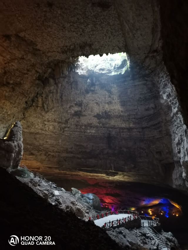 亮点:站在天坑边缘俯瞰,视觉冲击力极强;溶洞内钟乳石灯光秀绚丽(部分游客认为灯光稍显俗气)。