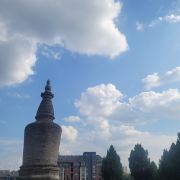 在进入北门后的右上方,因为不是很明显,会被很多人所忽略,这可是河南省的重点文物保护单位,而且也是洞林寺对外宣传的标志,可惜寺庙周围的房子建的太高了,无法拍出塔耸立云霄的感觉