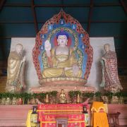新建的洞林寺除完好的保存着这些古迹外,还新修了宏伟壮观的山门,正中为4位佛神肩顶着巨鼎,鼎正中写着少林寺方丈释永信的题字“洞林大觉禅寺”。寺南500米处的洞林湖,湖光山色,颇为迷人。