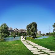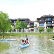 从他的名字上来看就能想到这里有一定的江南风光,小桥流水,只是没有人家。一条小河万源穿过,可千万不要小看了这条小河在这条小河里有我们熟悉的野鸭,还有儿童和成人都可以游玩的水上皮划艇项目。