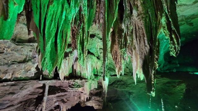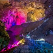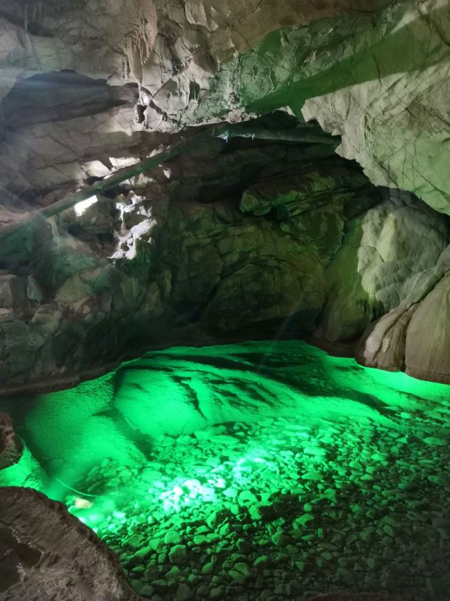 • 游览方式独特多样:洞内水陆皆备,游客可以先乘船游览长466米的神秘地下河,感受水路的神秘莫测,仿佛穿梭在时空隧道中;也可以漫步旱路,沿着曲径通幽的步道,细品石笋、石钟乳等景观,感受峰回路转的奇妙。