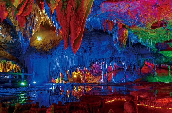位于湖南省娄底市新化县资水河畔,是一个集溶洞、峡谷、峰林、绝壁、溪河、漏斗、暗河等多种喀斯特地质地貌景观于一体的大型溶洞群。有九层洞穴,探明长度2870余米,已开发游览路线1896米,其中包括长466米世界罕见的神秘地下河,泛舟地下河,在暗黑中行进,刺激、期待、惊喜的感觉接踵而至,非常值得。