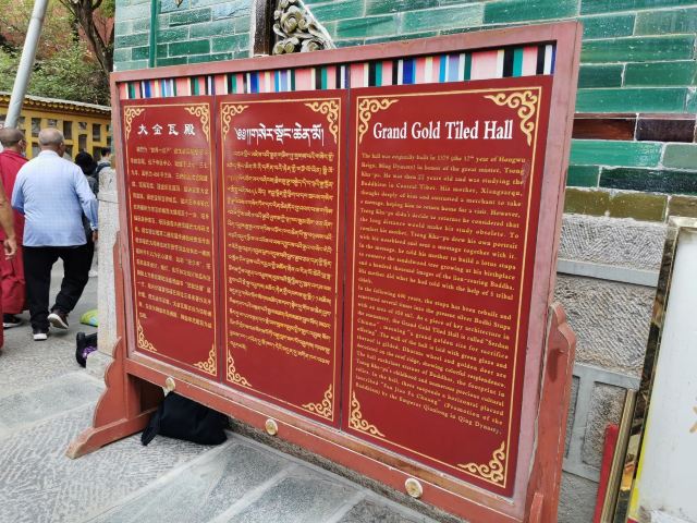 大金瓦殿除了最有名的主殿之外,周边几个殿也都很重要,共同形成一块完整的建筑群。非常适合来参观,金瓦殿外面有磕长头的信众,非常的虔诚。这边的讲解员非常的专业,人也多,所以有耐心的话还是可以好好听一会导游的讲解,能增长很多的知识,甚至可以学到很多的道理。