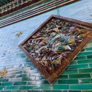 塔尔寺大金瓦殿位于塔尔寺建筑群的中心。传说是宗喀巴大师的出生处,大师出生时的脐带血滴在这里,之后便长出一棵菩提树。后来在树外包了塔,修了寺院,塔尔寺因此得名。这棵树、这座塔就此成为大师的化身。参观塔尔寺大金瓦殿,首先就会注意到这里的金顶,这座金顶在历次修建中都使用了大量黄金,在2001年修缮时使用了160多公斤黄金重新鎏顶,晴天时金光闪闪,分外闪耀。走进大殿,高11米多高的圣物宝塔就在眼前,这座塔内包裹着菩提树,是第二佛陀宗喀巴大师的化身,殊胜无比。除了宝塔外,殿内还有历代皇帝封赐的法宝,也都是珍贵的文物。