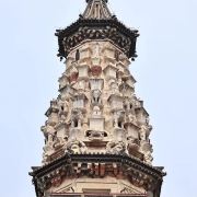 石家庄广惠寺位于河北省正定县,是正定八大寺之一,始建于唐贞元年间(785-805年),距今已有1200余年的历史。广惠寺不仅承载着丰富的历史文化,还以其独特的建筑风格和艺术价值闻名;广惠寺的标志性建筑是华塔,又称多宝塔或花塔。华塔高达33.35米,总平面呈八角形,由主塔和四座小塔组成。主塔共四层,底层四角各附建一六角形亭状小塔,小塔环抱主塔,主次相依,精巧华丽。华塔的第四层尤为特别,塔身呈圆锥体,周身装饰有彩塑的力士、兽首、狮、象、佛、菩萨等形象,造型古朴而雄奇,华丽而生动。