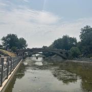 桥下的河水仍旧是封闭的,只是长度比上次来长了很多。而那条因桥而有名的洨河从紧邻的旁边流过,为何不把真正的洨河连通过来呢?