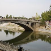 赵州桥又名安济桥,当地俗称大石桥。建于隋开皇后期至大业初年(公元595年-605年),距今已经1400多年历史,由隋朝匠师李春设计建造,北宋时期哲宗皇帝北巡时赐名“安济”。