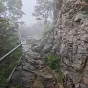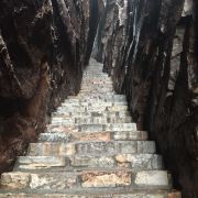 出发前做攻略很多人推荐从三皇寨上少林寺下(实践证明这是对的),一开始我也是这样打算的,但看到有人体力一般,上山路上花费时间长导致下山后少林寺已经关门且没看上表演等遗憾,又开始纠结要不要从三皇寨上,从郑州一大早出发到登封已经九点多,我平时不怎么运动不敢高估自己的体力,怕下山时间晚了逛不了少林寺,秉承着既要又要的原则还是决定反着走从少林寺上三皇寨下。逛完少林寺已经十二点多,买了单程索道票上山,售票员强推买往返索道票,因为往返100单程70,这里要注意一定想好去不去三皇寨,因为一路上爬上爬下到三皇寨基本快到另一侧山脚了,真的没有勇气再走一遍回去坐索道,返程票就浪费了,下山路上遇到好几个返程票没用上的。索道上山后步行不远就到书册崖了,这时候还觉得蛮轻松的,登山杖都多余带了,过了书册崖开始不停的上上下下,开始还会和遇到的人聊两句后面大家都累的说不动了闷头苦爬,只能听到大口喘气的声音,而且越走人越少,到了祈福台周围已经没几个人了。还在想时间把控的不错就听到有人说要下雨了,抬头看不知道从哪冒出来的一大片黑云肉眼可见的快速移动过来,紧接着一阵风刮过,温度也开始下降,好像就是一瞬间的事,我当时满脸疑惑,明明看了天气预报降雨概率为零😂还没缓过神来,一开始说要下雨的人过来问我怎么一个人爬山,说他们几个是野道上来的可以和我一起搭伴下山,帮我在祈福台拍了照雨点就打下来了,我们几个冲到旁边卖东西的棚子一边收电子设备一边穿冲锋衣,本想等雨停再走,但棚子里已经有三个人了,老板说这个棚子下面是空的,就是在山崖上搭了个板子,承受不了这么多人的重量,吓得我们赶紧出来,买了雨披冒着雨下山,下山的路被雨打湿又陡又滑,真的感谢这几个人和我一起下山,不嫌我走得慢,到三皇寨又遇到几个躲雨的人,我们也停留了一会拜了三皇就接着往山下走了,站在好汉坡上看着长长的下山楼梯才体会到什么叫上山容易下山难,全靠登山杖撑着慢慢挪下去,字数有限写不完了…
