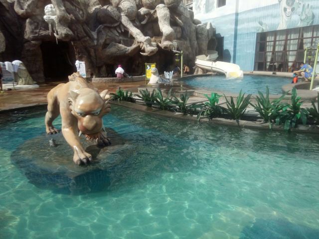 3分 不错欧亚菲温泉水世界的造浪池挺宽敞的,室内有小池子可以泡温泉,也有的泡池在溶洞里,还有漂流池和大滑梯,大人小孩玩的都不亦乐乎。
