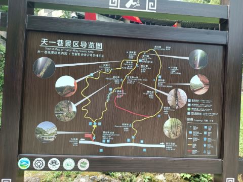 第一绝是天下第一巷:位于天一巷景区,全长238.8米,两侧石壁高120—180余米,宽处0.8米,窄处0.33米,可谓世界一线天绝景。2009年,崀山天一巷入选世界纪录协会世界第一巷。