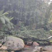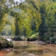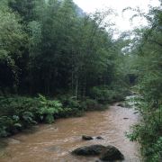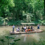不过实在无心等待,也就豁出去了。大爷报价不贵,我们俩就上车了。耳边风声,脚下水声,空中竹林摇曳满眼绿,也是不期的享受。
