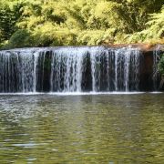 四洞沟景区离赤水市城区17公里,在景区一段约四公里的河道上,按大致相等的距离排列着四级跌水瀑布,姿态各异。四个瀑布分别为水帘洞、月亮潭、飞蛙崖、白龙潭,各有特色,游客可以选择观光车或者徒步游览。