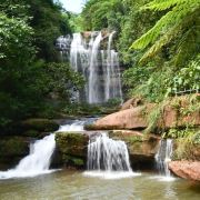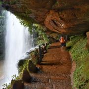 景区的美景不再赘述,四挂瀑布形态各异,各有千秋。第一处为水帘洞,且人可以从瀑布后穿过,水流在眼前倾泻而下,非比寻常的快感油然而生。第四洞也很有记忆点,站在瀑布边上,人就像是被笼罩在一个巨大的定妆喷雾里,细腻的水珠让人痒痒的。补充,桫椤树是地球上唯一的木本蕨类植物,景区里有两百多棵。