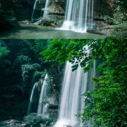 🌸这四级瀑布由低到高依次名为水帘洞瀑布、月亮潭瀑布、飞蛙崖瀑布、白龙潭瀑布,它们形态各异,神韵俱佳,有如翠螺沐浴,或似新月流光,或若玉蟾戏蛇,或像云中落锦。