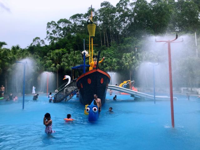 👋tips:[糖果]1带齐泳衣,泳帽🎩,玩水玩具,拖鞋👟,防水手机📱袋,太阳镜🕶️,露天的注意⚠️防晒。一部分场地在山坡上,空气不错[OK],有树🌲林,这点很喜欢。[糖果]88块两大一小🎫票,价格还可以。1.2米下免费。[糖果]有些刺激项目需租水泡30元才能玩。[糖果]按金100元租置物柜,不收租金,玩后凭水环和压金单原路返回。