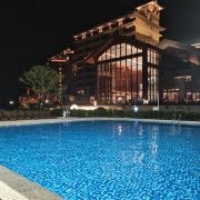 翔顺金水台莲花温泉共有50多个温泉泡池,按儿童欢乐区、动感游乐区、泳池区等六大区域进行划分,冲浪池配备LED屏表演舞台,可举行大型晚会。