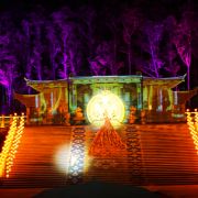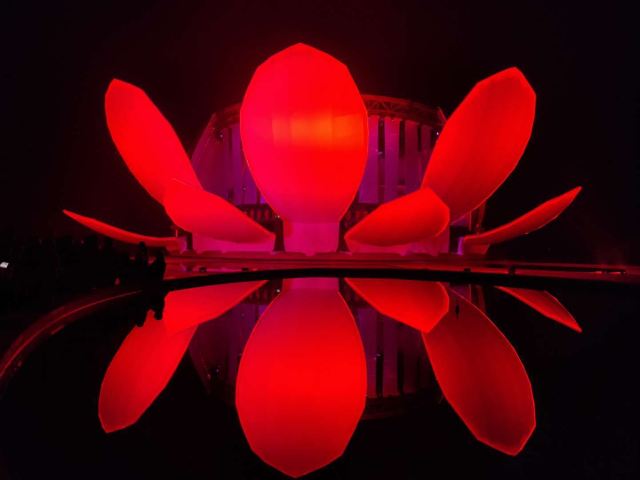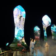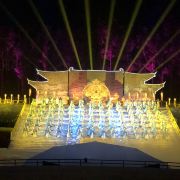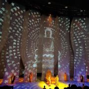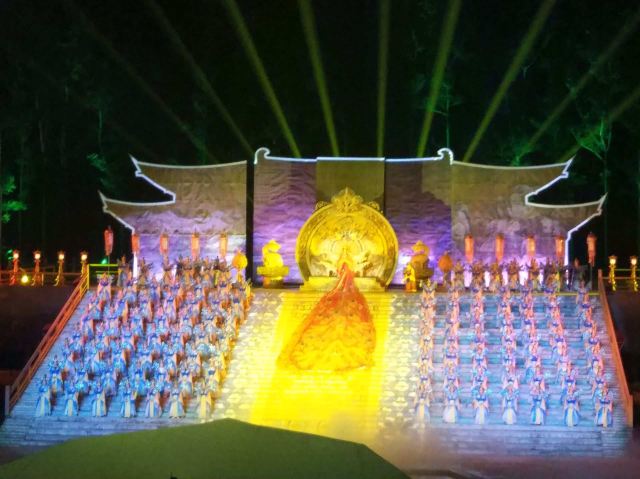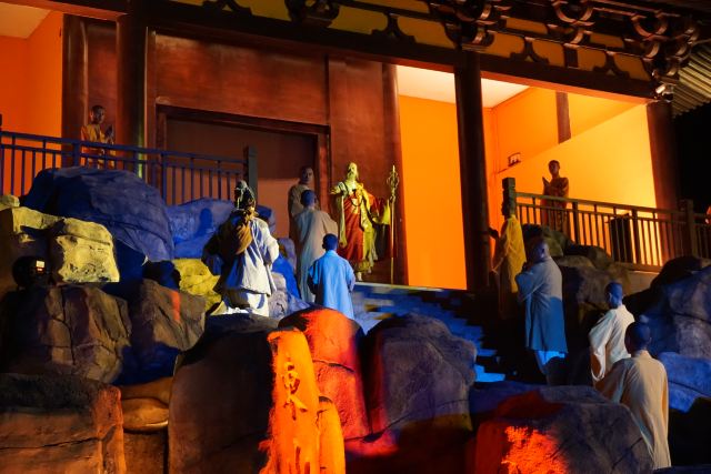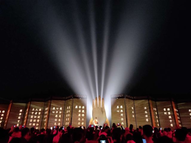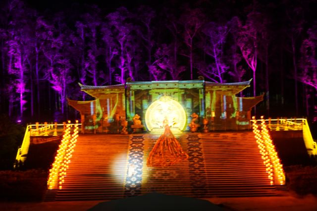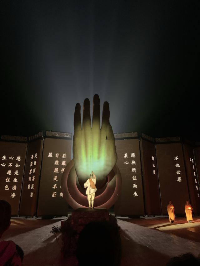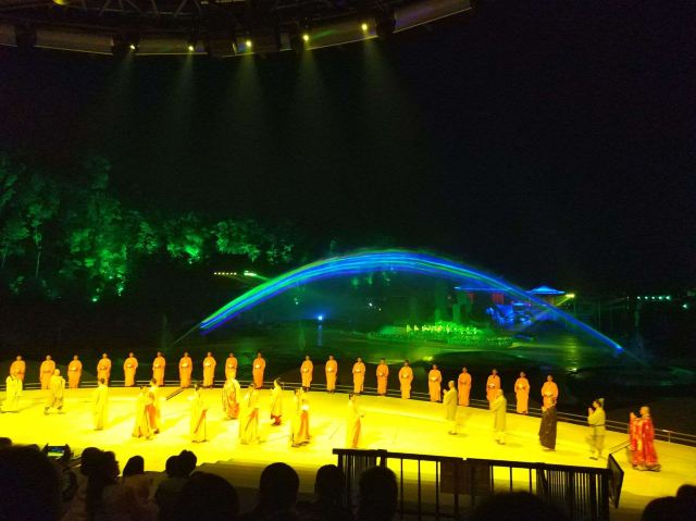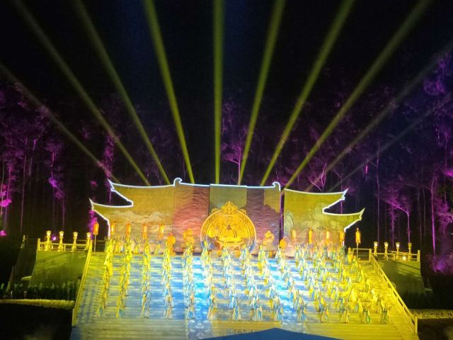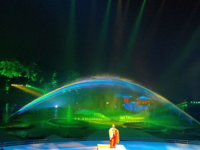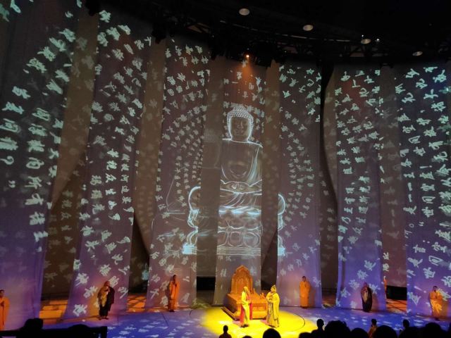 《惠能传奇》“菩提广场”中央LED屏幕为360度旋转可移动、升降的高科技屏显设备