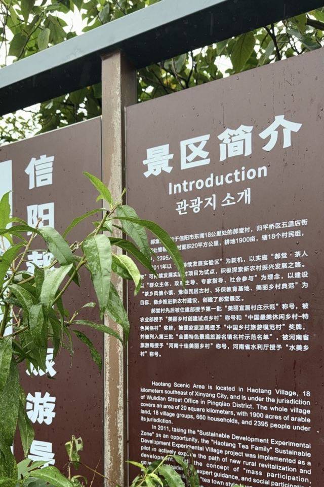 4分 满意2025/3/28来到位于信阳郊外的郝堂村走走,从市区坐19路公交到终点站就是郝堂村,车程约1小时。由于是工作日,所以游客很少,村子里也显得格外的宁静。整个郝堂村四周被山环绕,有山有水,风景优美,景色不错。村里主街上开着各种商铺,茶馆,咖啡店和民宿,很适合来这里休闲遛娃,是个放松心情的好地方