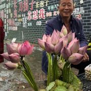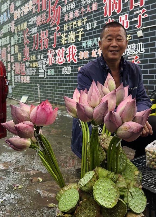 一荷客栈老板帮忙联系现摘的莲蓬和荷花,新鲜又便宜,还帮我们扎泡水中,带回家插花清新文艺。