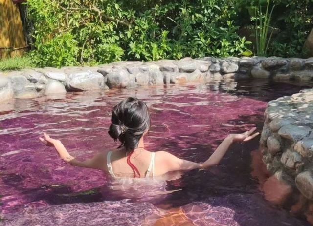 3、园内温泉真的超赞,环境也很不多,有提供免费的茶水,它有很多种类型的温泉,玫瑰的温泉很香的好喜欢,薰衣草的温泉拍照巨好看,推荐呀,还有大瀑布温泉(但是它的水好烫42℃),大泳池温泉很好玩的
