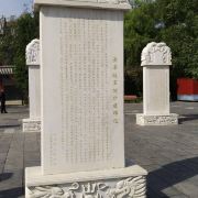 ③中华姓氏鼎坛:1座三层15台阶的圆形石坛,坛高9米,底座为35米×35米,边缘是水景;石坛顶21米×21米,正中是1尊方鼎,坛下主轴路两侧各有1排石柱,上刻古文字(像甲骨文)和现代字的对照。改造前鼎坛上刻有中华姓氏,改造后没找到