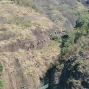 东浒寨风景区位于湘鄂贛三省交界处的江西省九江修水县境内,是按国家4A级景区标准建设的集旅游观光、娱乐运动、拓展研学、森林康养和住宿餐饮为一体的综合型景区。景区属于典型的丹霞地貌,境内森林丰茂、飞瀑流泉,赤壁丹霞,湖光山色融为一体,构成一幅幅美丽的山水画卷。景区内主要景点有:九镜湖、石窟瀑布、将军岩、钟鼓山、天王桥、清心桥、一线天、百丈梯、玻璃鹊桥、百里画廊、象鼻山、吊兰谷、方竹林、红岩寺、东浒古寨等。