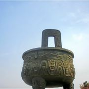 塑像下的炎黄二帝广场建有郑州黄河文化公园-炎黄鼎,另在三级广场坛道两侧分置铸铜八鼎,共同构成九鼎。二级广场两边对称放置钟与鼓,喻钟鼓长鸣,戒骄戒躁,自强不息。