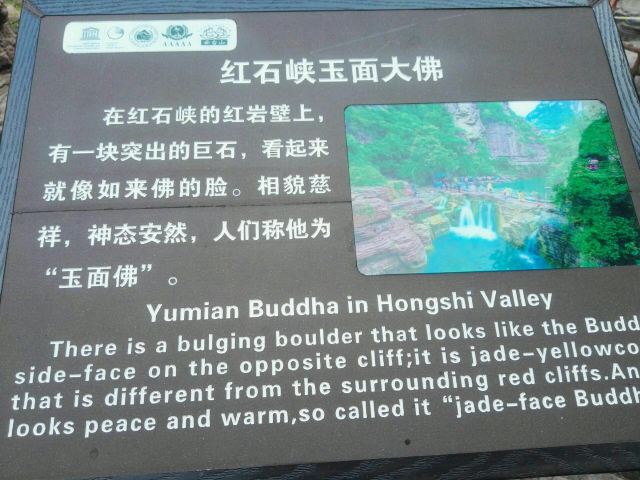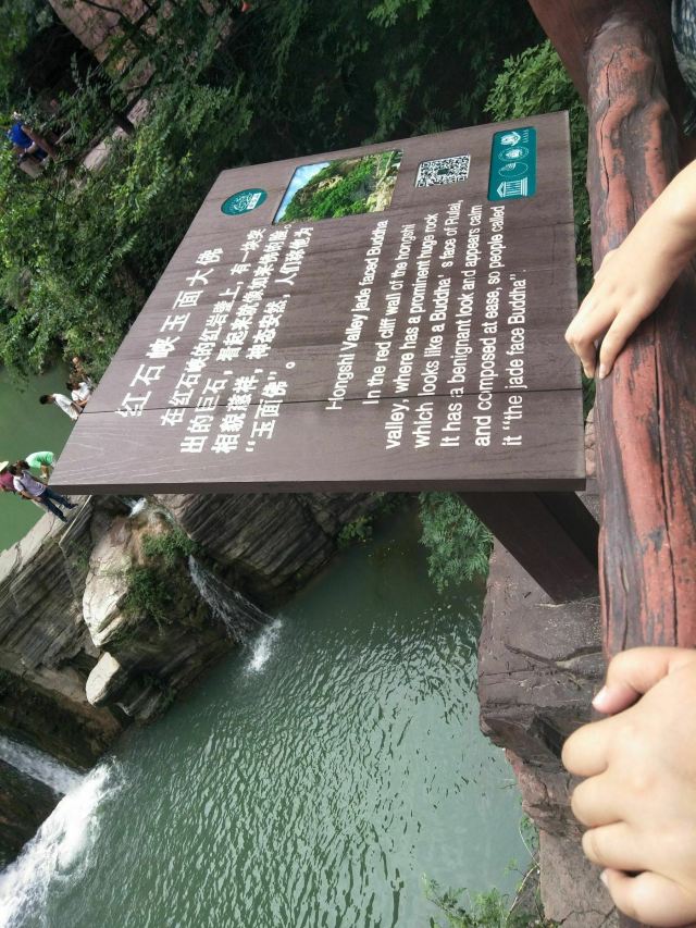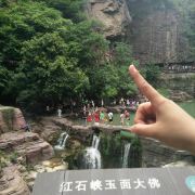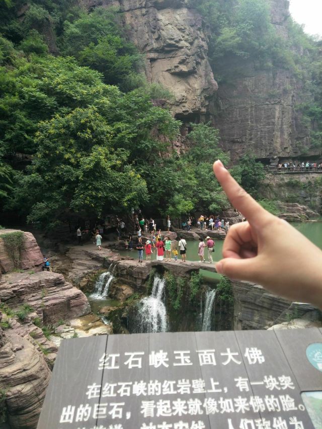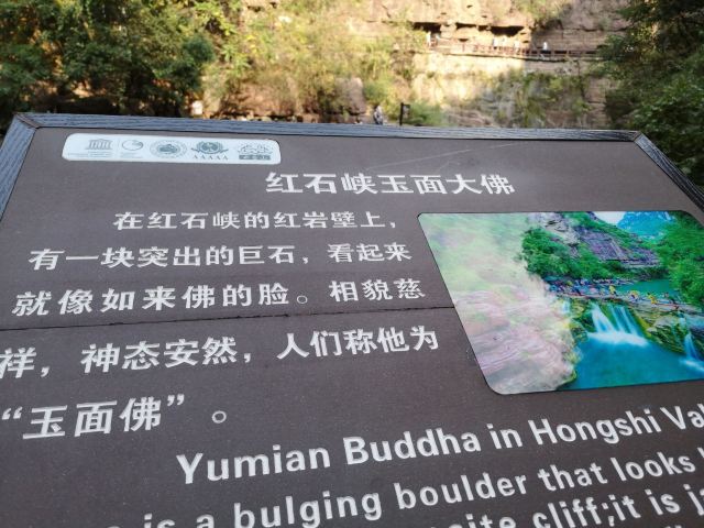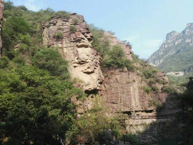 微信小程序红石峡玉面大佛位于修武,在红石峡的岩壁上,有一块突出的巨石,看起来就像如来佛的脸,相貌慈祥,神态安然,人们称其为“玉面佛”。