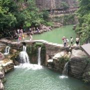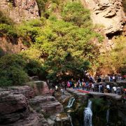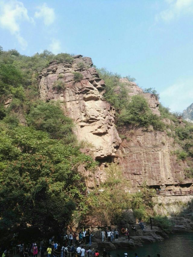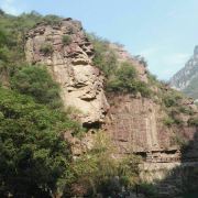 红石峡玉面大佛位于修武,在红石峡的岩壁上,有一块突出的巨石,看起来就像如来佛的脸,相貌慈祥,神态安然,人们称其为“玉面佛”。