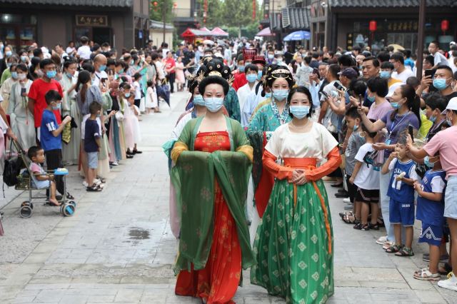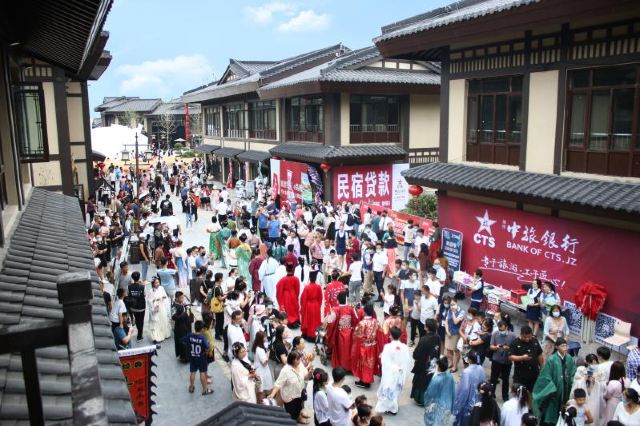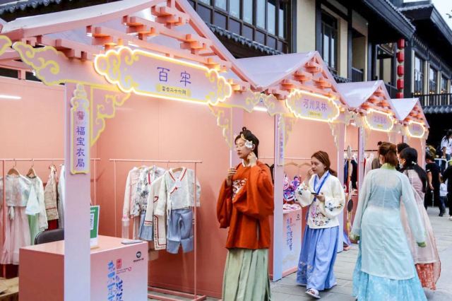 古镇里有汉服集市,这里有好多汉服店铺,无论是衣服还是装饰,都一应俱全。还能闯关式逛街,打卡“云台二十六关”