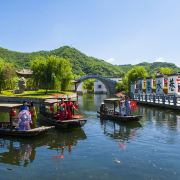 岫岩水巷风景区位于素有“中国玉都”之称的岫岩县境内,以江南建筑为形,以国学文化为魂,把江南的水乡风光带到北方来。水巷有三种形式,一是河街并列的水巷,二是有河无街的水巷,三是两街夹河的水巷。