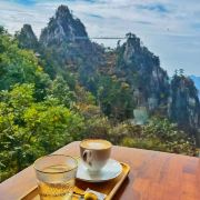 第二天上午吃完早点,大约10点半开始上山,在酒店等观光车来接就可以的,门票+往返索道每人150元,索道不短,上去后景色自不用说,卡卡卡几张照片拍一拍,随后去打卡了1830米的云上咖啡厅,又去了玻璃栈道(此处单独收费30元每人),除了神女峰没去之外几乎都走到了。景色还真的是不错的,整个景区不大,慢悠悠拍照加休息逛下来大约4个小时。下来后,山门口的儿童游乐场可以让孩子门业兴奋兴奋,大人们可以在上面吃点肉夹馍凉皮臊子面等等。