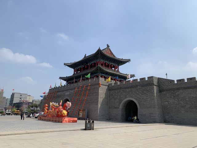 4.碧霞宫到浚县古城:步行至古城南门,从南向北走至文治阁(古城中心),向西可看文庙、县署、世袭翰林院、关圣庙、古城墙等