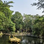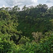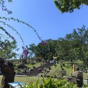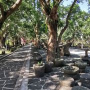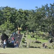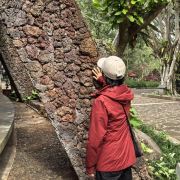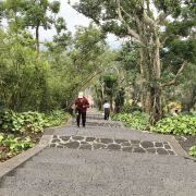 顺着景区的步道往里走,沿路是葱茏的热带植物,还可以看到诸如玄武岩、熔岩流等火山喷发遗留下的景观,还有一个火山石器文化园,展示2000多年前火山地区的村落用火山石堆砌的村门、制造的石磨、石碗、石盆、石桌、制蔗器等等,置身其中,仿佛回到石器时代。
