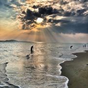 5分 超棒阳光、海水、沙滩、椰子树倒映构成美丽的自然画面,在海口市要想体验这一切,首推假日海滩。这里有海南岛最大的热带温泉滨海海岸之称,全长7公里,左沿是葱翠的林麻黄林带,其间错落着度假村、宾馆、游乐场等;右沿是碧波万顷的琼州海峡,海面船只穿梭。整个海滩共分为滩日浴区、海上运动区、海洋餐饮文化区和休闲度假区,是海口市最具代表性的海滨旅游休闲胜地。