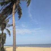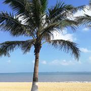 假日海滩位于海口市西部,海滩的左侧是葱翠的绿树,右侧是琼州海峡。在这里,阳光、海水、沙滩、椰树相映成趣,构成一幅美丽的自然画面。