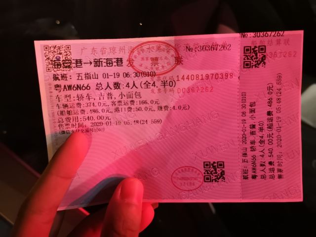 刚刚进港购票时才知道,4月30日起至月5日24时前,除海南本地小客车以外,其他地区7座以下非营运小客车和一位司机过海免费。我刚刚看了船票,免费金额总共是415.5元。伙伴们,免费时间还有大约24小时,听说十一长假还要免费。海南欢迎您来自驾游!