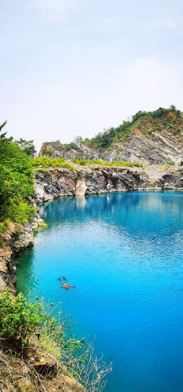 盱眙象山国家矿山公园,坐落于淮河之畔,占地3平方公里,是清朝末期便有开采石料记载的百年老矿坑,2002年采石全面关停,实施矿山生态修复治理和景区建设项目。经生态修复和天然汇集的蓝色湖水,形成独具特色的美妙景观。水质清澈似“蓝宝石”,能见度15米以上,为一类水质,是国内罕见的优质淡水潜点,被广大网友和众多潜水爱好者誉为江苏“小马尔代夫”。2025年全新升级打造盱眙“深蓝之眼”,新增4000㎡沙滩、5000㎡草坪、山顶全景咖啡馆——“矿野”咖啡,满足全年龄段休闲需求。
