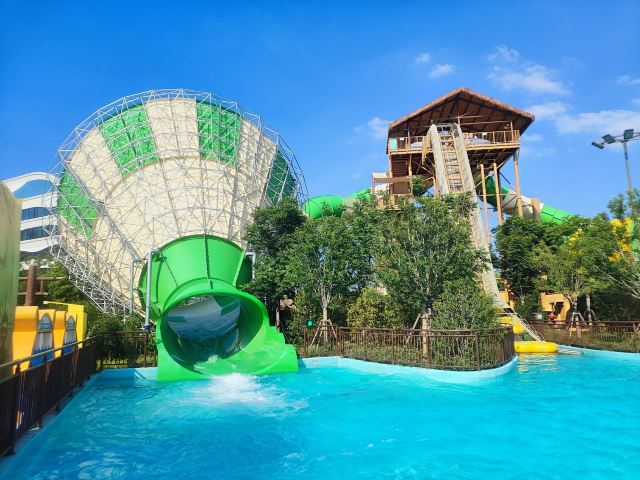 徐州方特水上乐园是依托华强方特前沿技术和丰富运营经验,结合“熊出没”IP元素打造的一座沉浸式水上娱乐胜地。乐园拥有《飓风湾》《飞跃河谷》《彩虹滑道》《翻江倒海》《大喇叭》《熊出没水寨》等18个特色水上项目、多项主题造景,还有众多精彩的水上表演和互动活动,为您带来清凉酷爽的合家欢游乐体验。