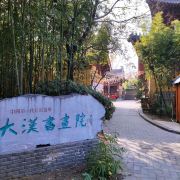 ②明道画廊:两侧长廊壁挂有画作,是竹林书画院创作,长廊一端有画室