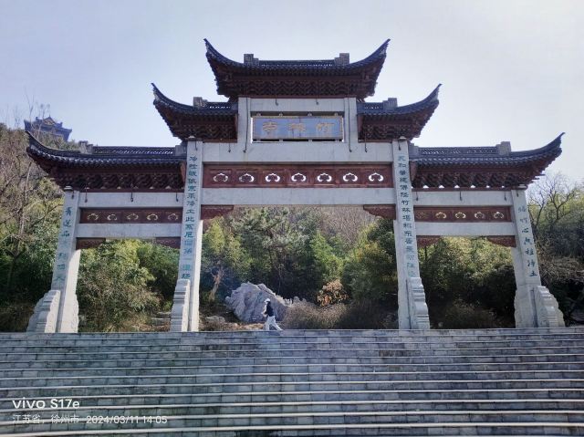 2、竹林寺始建于东晋(317-420年),历史上屡次兴废,是徐州八大寺之一,初名青园寺,我国第一位比丘尼(女性教徒,俗称尼姑)、武威太守之女、徐州籍净检法师曾在此主持,后该寺被御赐现名,被誉为“第一比丘尼道场”。寺内从外到内依次有: