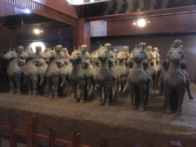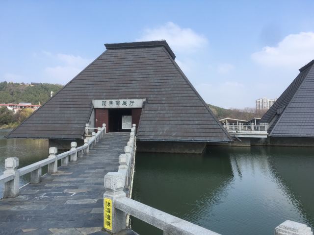 水下兵马俑博物馆分为两个方形桷斗状建筑,借鉴汉代屋顶建筑形式,呈四坡面。展出的是复原的俑坑和精心修复的兵马俑。