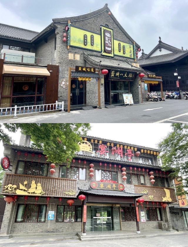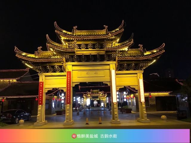 盐镇水街包括大宅门、天水广场、漂舟戏苑、翰墨阁、水上游船等等特色景点。