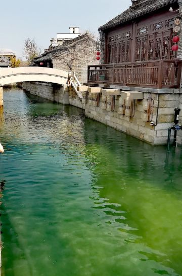 在红蓝对比的搭配中:❤️💙更显出小镇优雅宁静的气质,在这里可以闲坐在石凳上,木桥边,船行河中也别有一番风味,听着淮剧小曲,悠闲自在,享受生活…