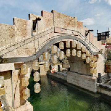 1. 古桥夜影:古老的石桥横跨在悠悠的河面上,在月光与灯光的映照下,桥身的轮廓被勾勒得格外清晰。桥洞的影子投在水面,与桥身相连,形成一个个圆润的光环,随着河水的涟漪微微晃动,仿佛在诉说着古镇千年的故事。
