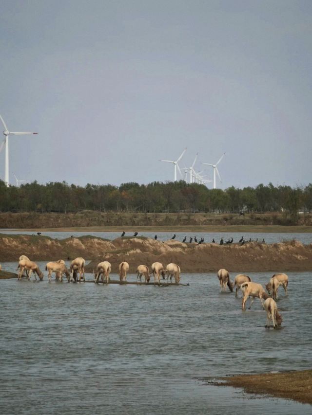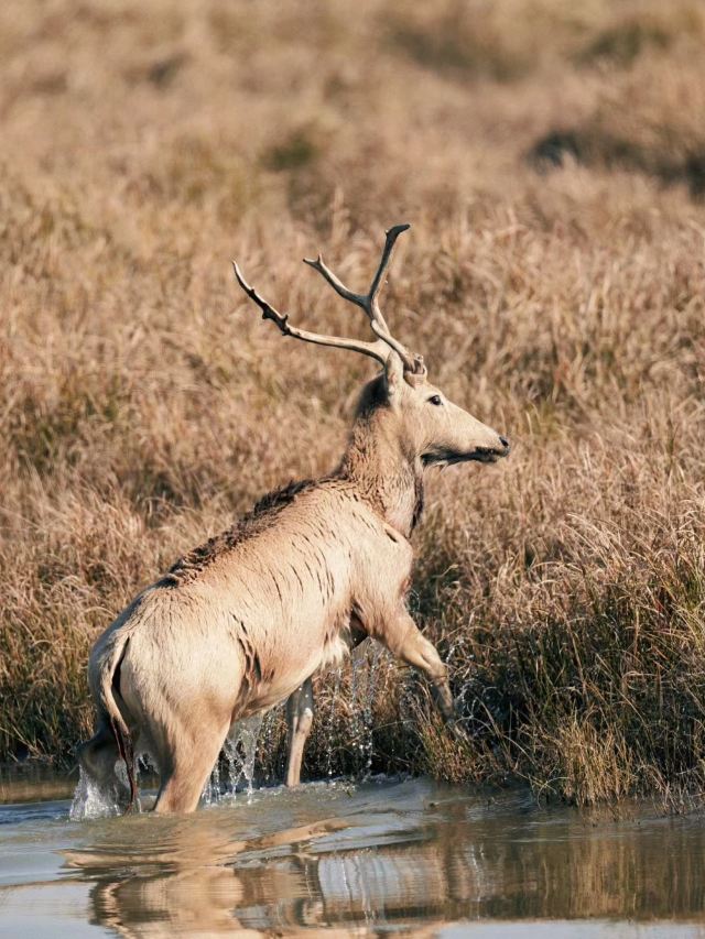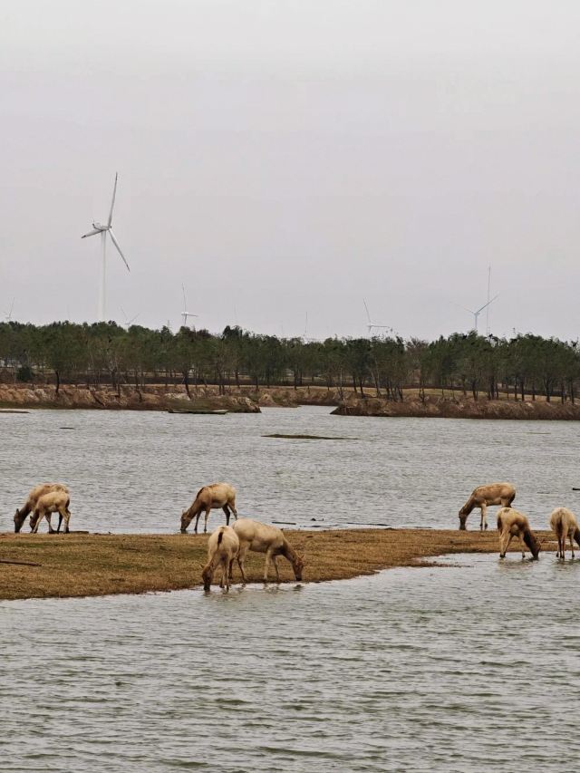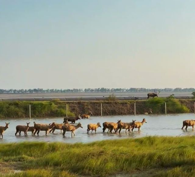 5分 超棒大丰区黄海湿地,成群的麋鹿涉水行进、奔跑或觅食。很是可爱😊⚈₃⚈