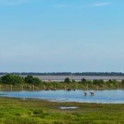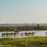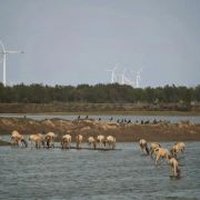 黄海野鹿荡坐落于世界自然遗产—中国黄(渤)海候鸟栖息地核心区,位于江苏大丰麋鹿自然保护区和盐城珍禽自然保护区区域,是美丽海湾—川东港海湾的中心区域。黄海野鹿荡是野生麋鹿聚集区,鸟类在东亚—澳大利西亚迁徙路径上重要的中转站之一,拥有300多种野生植物基因库。这里不仅拥有丰富的自然生态资源,还有得天独厚的文化资源,我国东部的暗夜星空保护地和东八区北京时间授时观测站的所在地,更有标志着这里从陆地走向海洋的古长江北入海口地质变化的重要成果,可持续的世界自然遗产旅游将更好体现人与自然和谐共生的美好画卷。