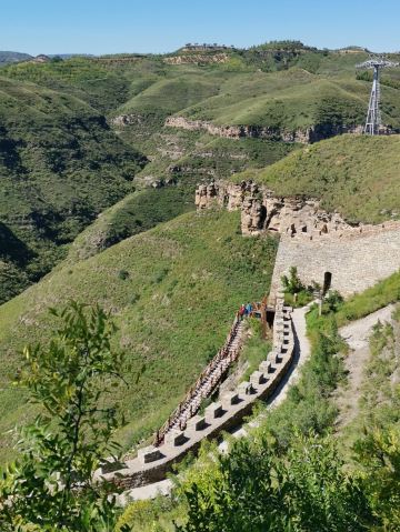 沿黄观光第一索道:连接清水湾与会峰寨,39个吊箱在1900米的线路上穿梭,游客可从高空中俯瞰黄河的壮丽景色。
